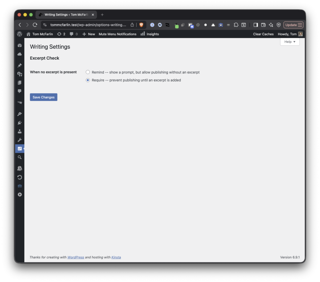 Require mode removes the bypass option entirely. If there’s no excerpt, the post doesn’t get published until one is added. This is useful for content teams that enforce editorial standards or for SEO workflows where custom excerpts serve as meta descriptions.